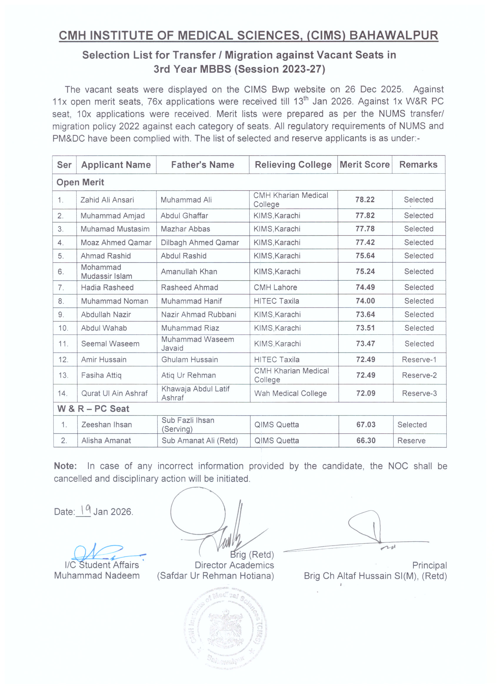 CMH Institute of Medical Sciences Bahawalpur and its teaching hospital (Combined Military Hospital Bahawalpur) are located in the heart of the historical city of Bahawalpur, the city of palaces. The college and hospital are spread over an area of about 40 acres.